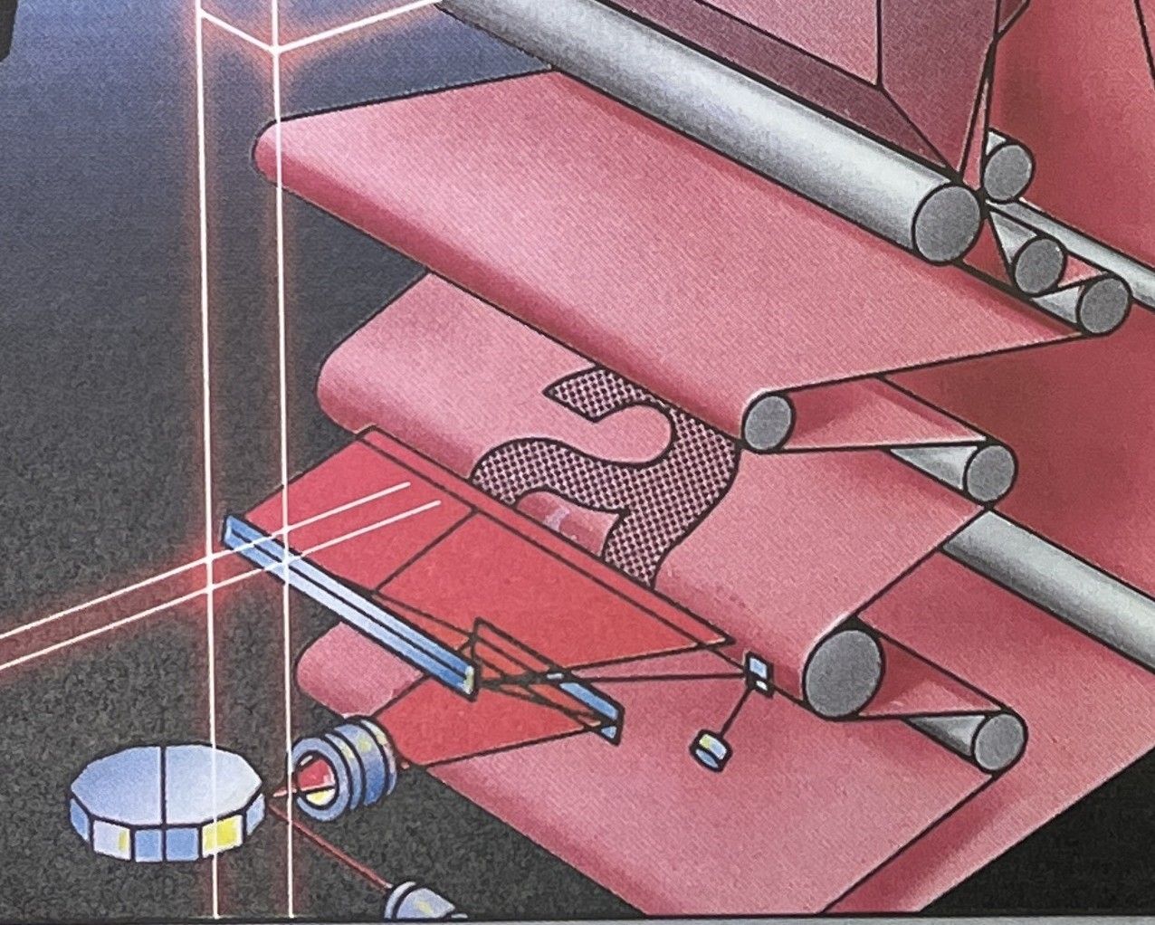 In de 6750 werd een lichtbeeld gevormd door een moduleerbare laserstraal die met hoge snelheid over het opgeladen master werd gestuurd. De laserstraal werd bewogen door een ronddraaiende spiegeleenheid gebouwd door het Japanse Topcon.